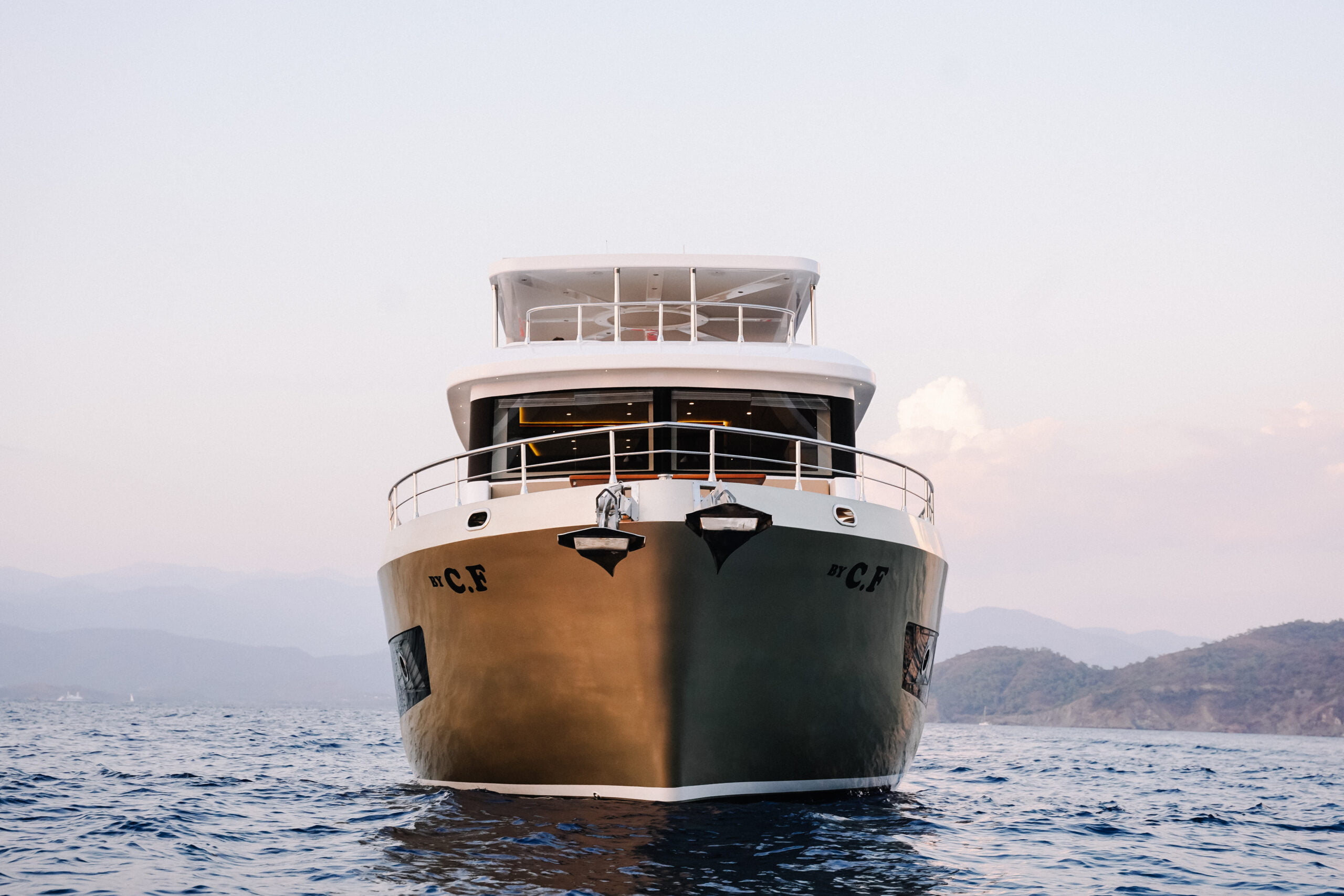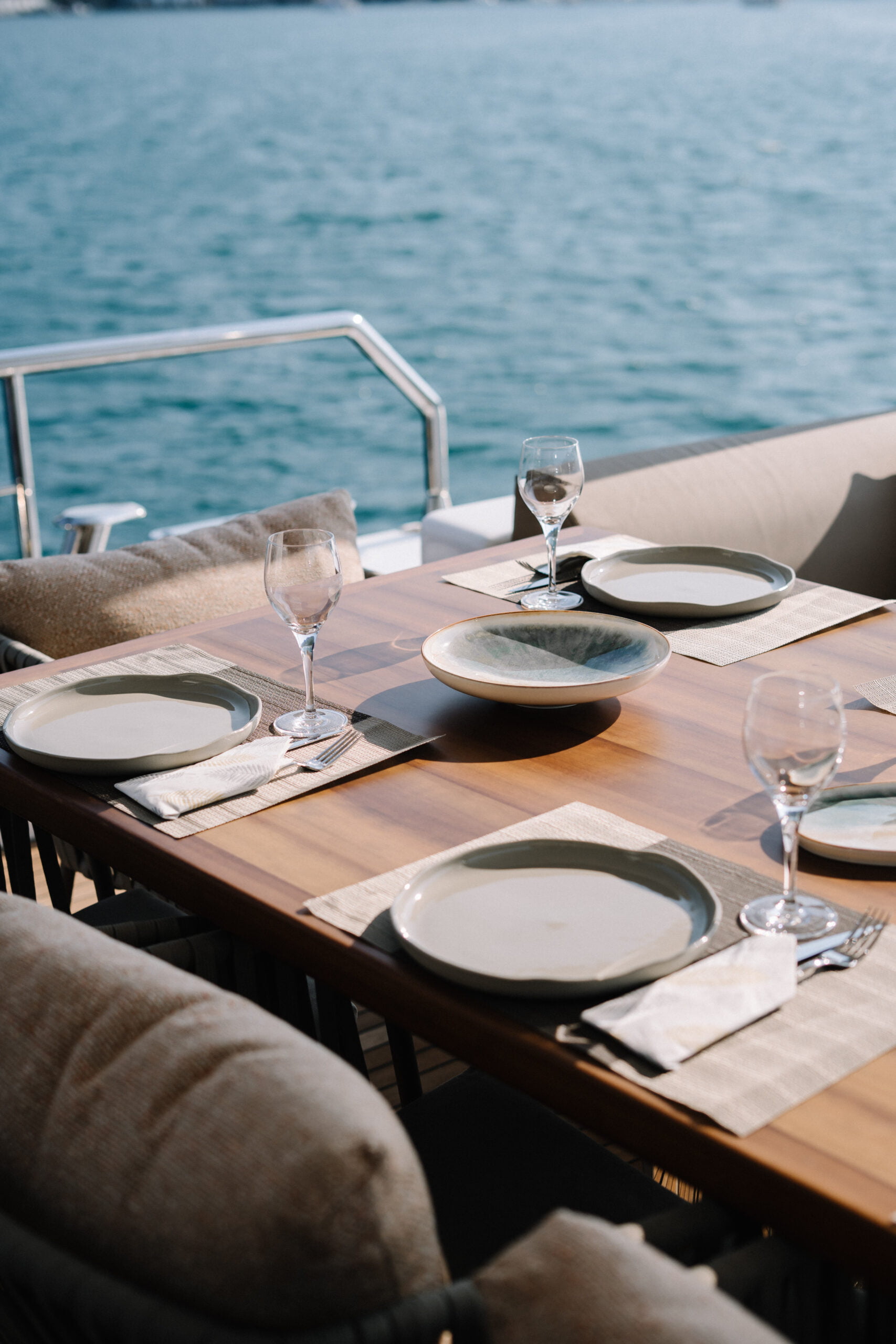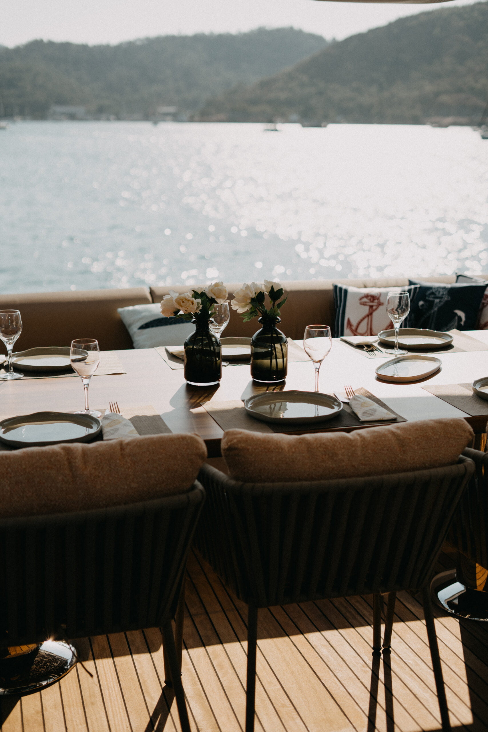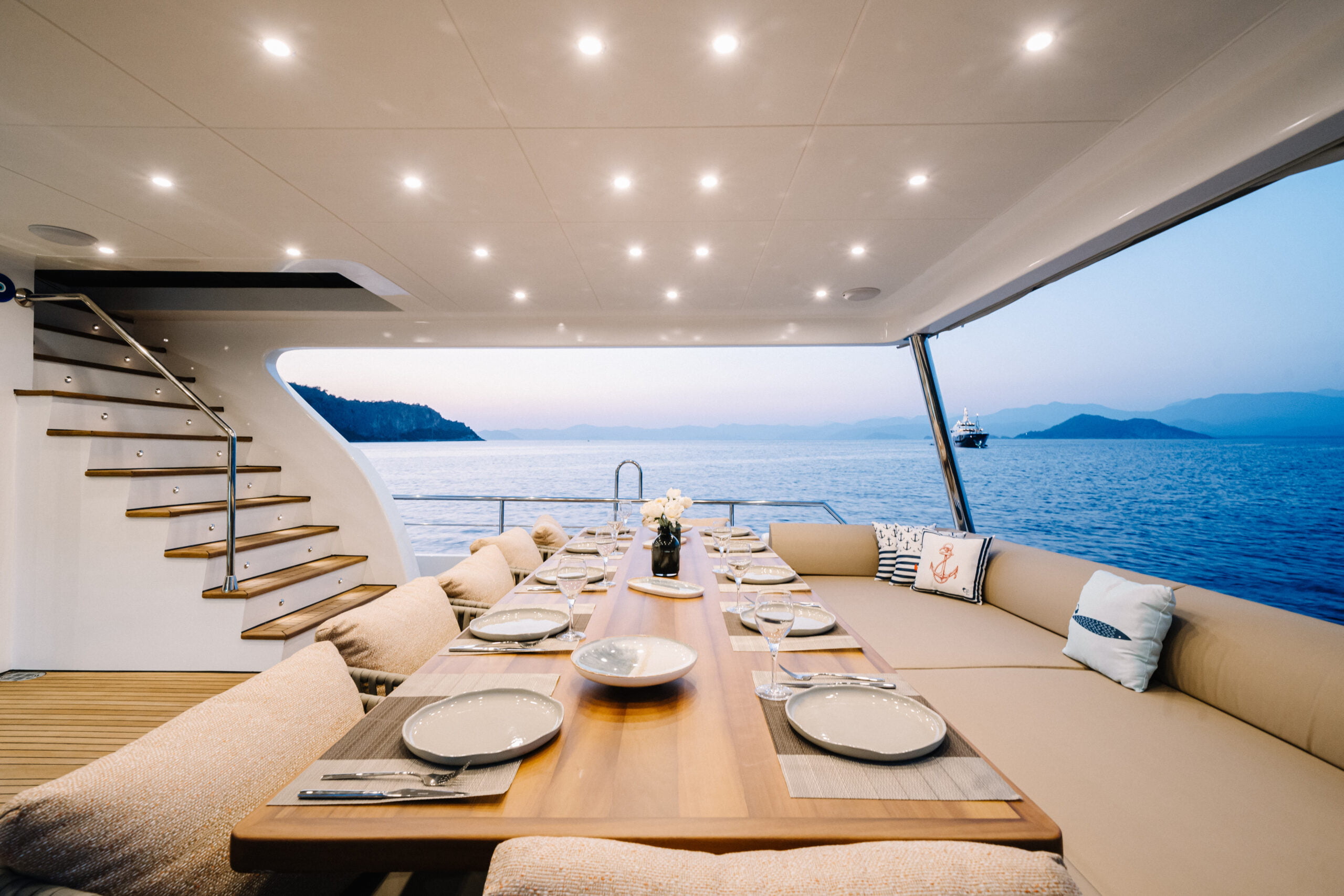 There are enough sun loungers, chairs, and service sets for all guests. BY C & F trawler also has a water maker, air conditioning, TV, Wi-Fi, generator, backgammon, canoe,